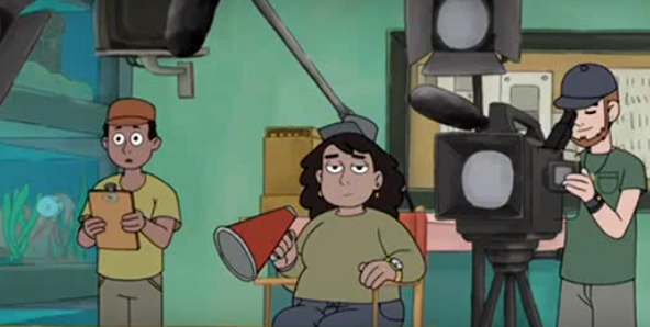 Itu, yang tampaknya asisten sutradara, memiliki kulit gelap dan rambut hitam. Dia terlihat mengenakan celana jeans khaki, kemeja kuning, dan topi oranye. Dia juga terlihat memegang clipboard.