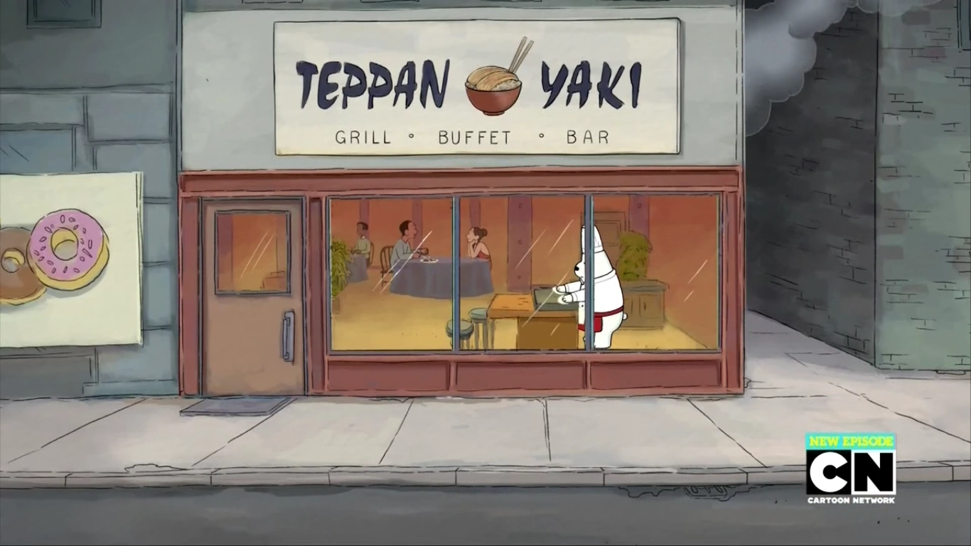 Teppan Yaki adalah restoran Jepang tempat Ice Bear bekerja sementara di episode "Losing Ice". Ketika Grizz dan Panda tidak pernah menghargai masakannya dan tidak pernah mendengarkannya tentang waktu makan malam, Ice Bear memberi tahu mereka bahwa dia akan berjalan-jalan dan melarikan diri. Dia berjalan menyusuri trotoar di kota sampai dia mencium bau makanan yang berasal dari sana dan mendapat pekerjaan berpikir itu menarik ketika dia melihat tanda bantuan yang dicari di jendela restoran.