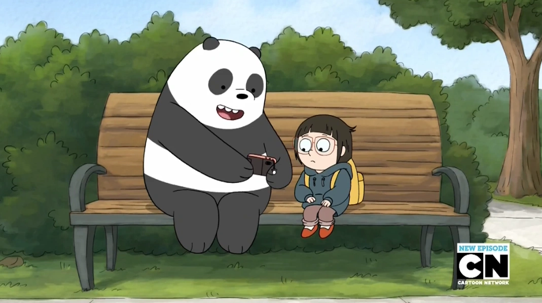 Much like his brothers, Panda's relationship with Chloe is explicitly passive, with no particular empathy towards either party. In "Chloe", Panda was submissive during Chloe's research and was often shown getting along with her. Evidently, Panda did confess to sabotaging Chloe's report alongside his brothers and took part in answering student questions to assure she acquired a perfect grade. Alongside Grizzly and Ice Bear, Panda tried to help Chloe become more confident in "My Clique", taking inspiration for his lesson from romance movies. When Chloe put what she learned to the test, she found herself coming across as odd to some of her classmates and left campus grounds, embarrassed. She ends up explaining to Amy how she felt after the Bears throw a "mature" party for her at their house. When the party is over, she helps the Bears clean up and begins to play charades with Grizzly, Panda and Ice Bear joining in.