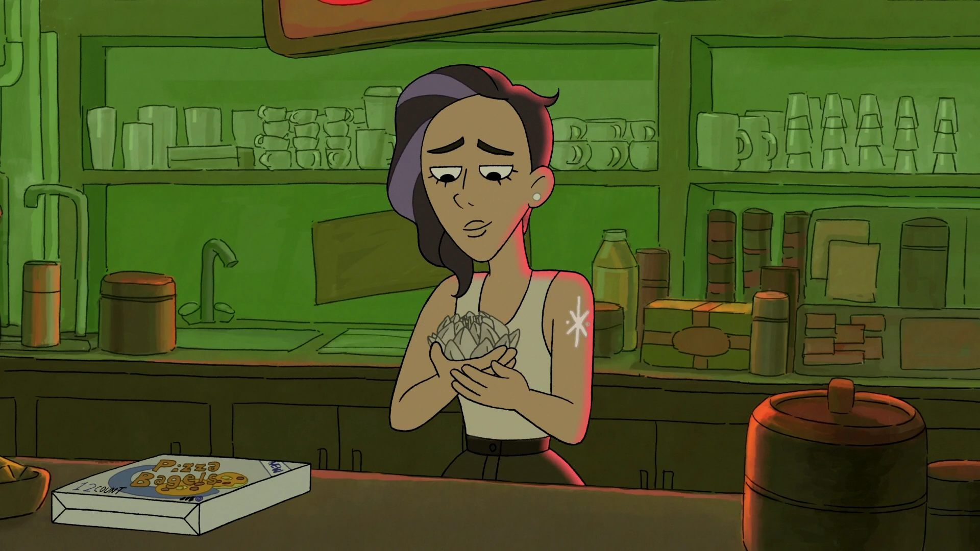 Cross My Heart is a song played in the episode "Icy Nights" when Ice Bear visits Yana at a bar in order to gain information about the Techies Gang. It is available on Brad Breeck's SoundCloud stream.