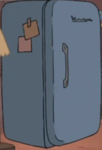 The Fridge is a refrigerator owned by the Bears and is Ice Bear's preferred place to sleep, though it's also used to store their necessities, such as food, condiments and drinks, and even Ice Bear's Axe. It made its first appearance in the episode "Food Truck".