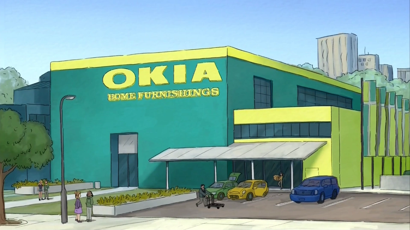 Okia is a parody of the furniture retailer company IKEA.